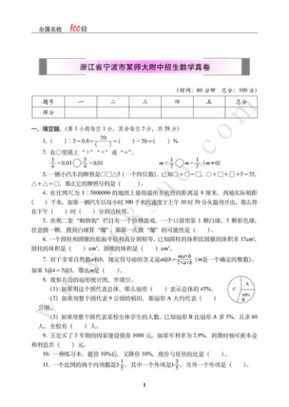 / 浙江省宁波市某师大附中招生数学真卷含答案