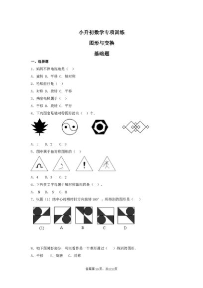 / 【精品】小升初数学知识专项训练(空间与图形)- 9图形与变换(31页)